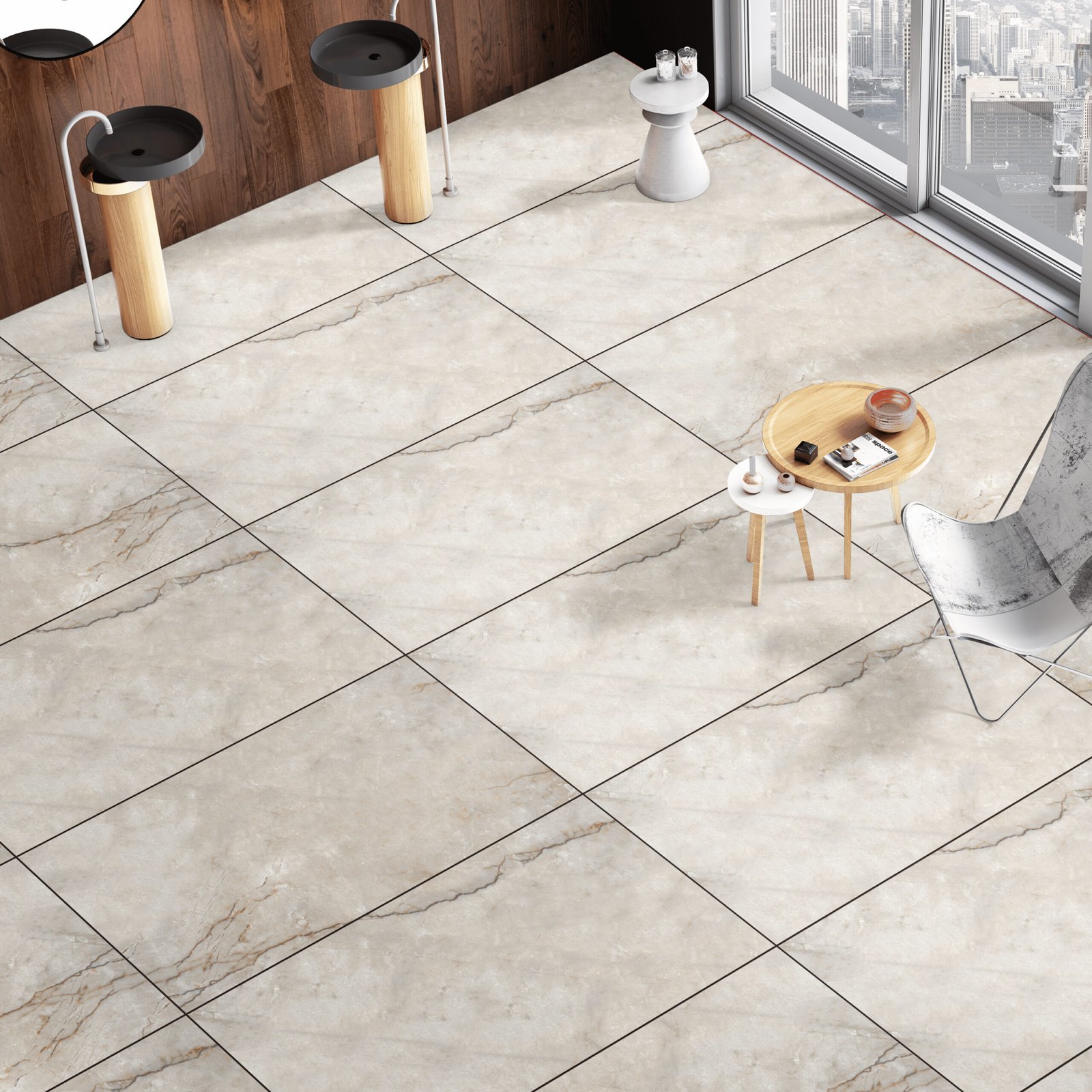 Marfil Bianco New GVT Tile – 600×1200mm (Glossy Finish)